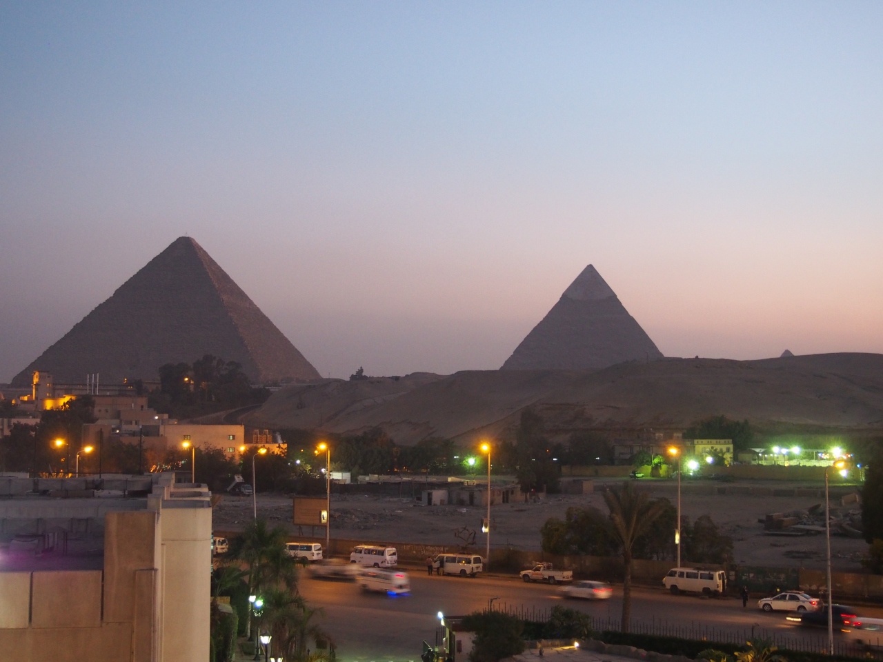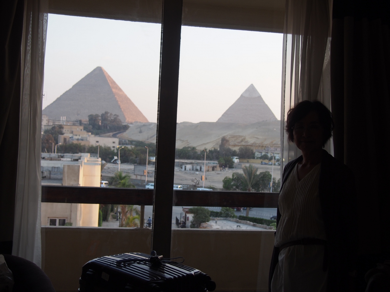 せっかくのエジプト旅行ですから、あのピラミッドをずっと見ていたいということで、このホテルを選びました。部屋からのピラミッド、庭からもプール越しにピラミッドを見ることができます。