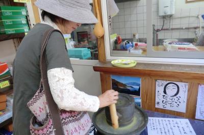 おばちゃんは、タレントのだれだれが来たなどとお話ししながら、近くで取れたお茶の葉を石臼で挽いて(もちろん体験もさせてもらえました。)ふるまってくれました。店の横に流れている清水の水もおいしかった。