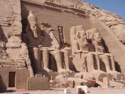 アスワンからアブシンベル神殿までのほぼ中間地点で、トイレ休憩でドライブインに寄りました。ヌビア砂漠の中にあり、遠くに山が見えますが、周りは砂だらけの中に一本道と砂漠。