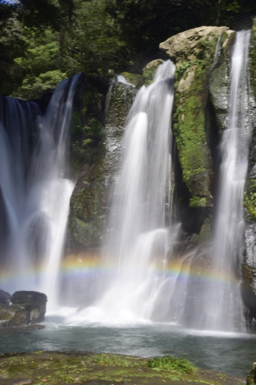 近辺は大川原峡、悠久の森と清流の観光スポットが複数まとまって点在しており、いずれも徒歩圏内で散策することが可能です。天気のいい晴天の午前中に訪れると、写真のように滝つぼに虹がかかり、とても綺麗に見えました。