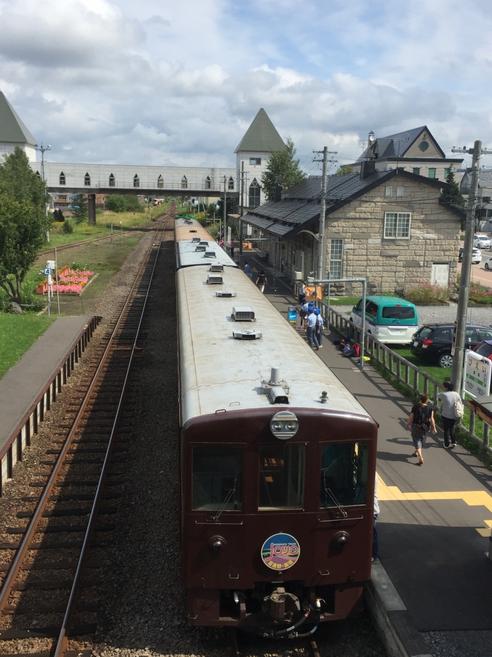 旭川から富良野へと飛び乗りました。窓のないトロッコ列車なので、爽やかな風を直に感じ取ることができます。旭川の辺りは市街地や住宅地の何の変哲もない景色が続きますが、美瑛や富良野の辺りはまさに北海道という景色が広がります。