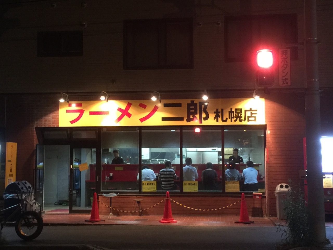 味噌ラーメンの本場、札幌に来たのにラーメン二郎を食べます(笑)札幌駅の北西側でやや歩きます。たどり着いたらすでに10人弱の行列ができていたので並んで食しました。