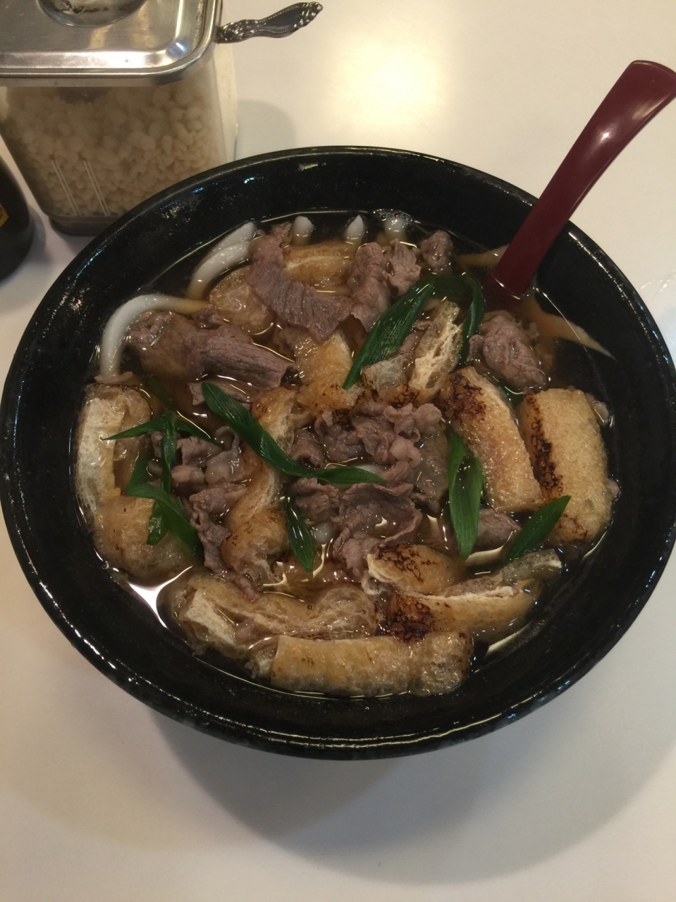 黒門市場の中にあるここのうどん屋の、きざみ肉うどんは名物。食べてみると、肉が薄いのに噛めばしっかりと肉汁が出るのに驚きました。とても美味しいでした。