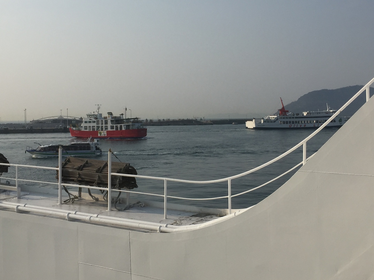 前者は高速船オーシャンアローでの運航で、かなりの速さです。内装も豪華で快適でした。