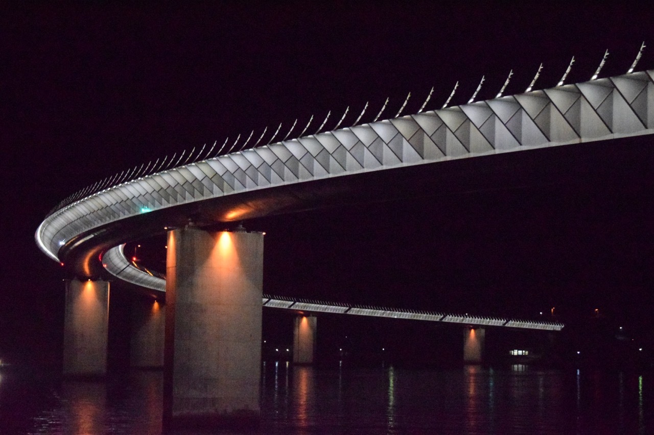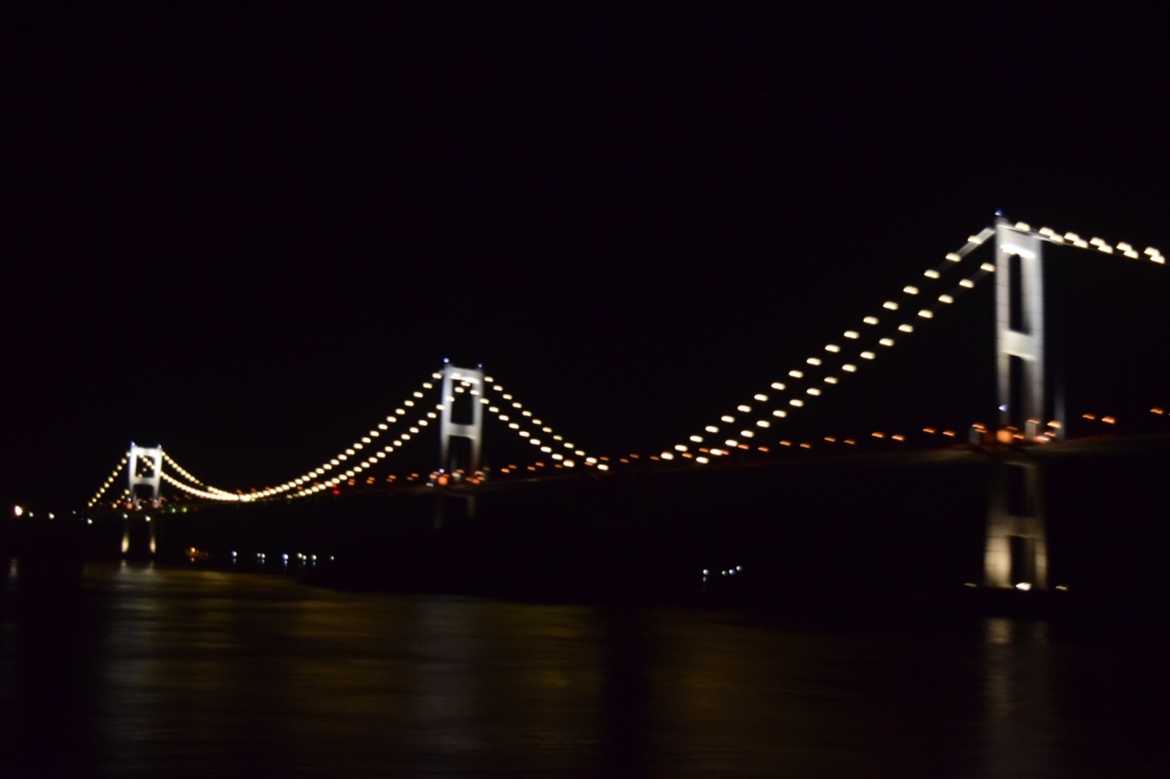 宮崎カーフェリーが神戸開港150周年のイベントで、滅多にない瀬戸内海経由となった時に乗船して潜りました。ライトアップが綺麗で、おー!と歓声を上げてしまいました。