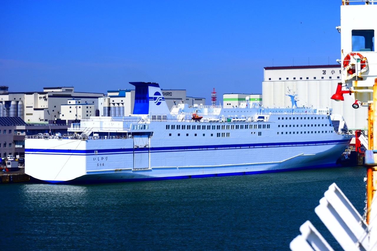 北海道に行く長距離フェリー航路の3本がここに集まっているので、ターミナルも巨大です。新日本海フェリーが発着する苫小牧東港も合わせると、フェリーターミナルとしては九州の新門司港に匹敵する規模です。