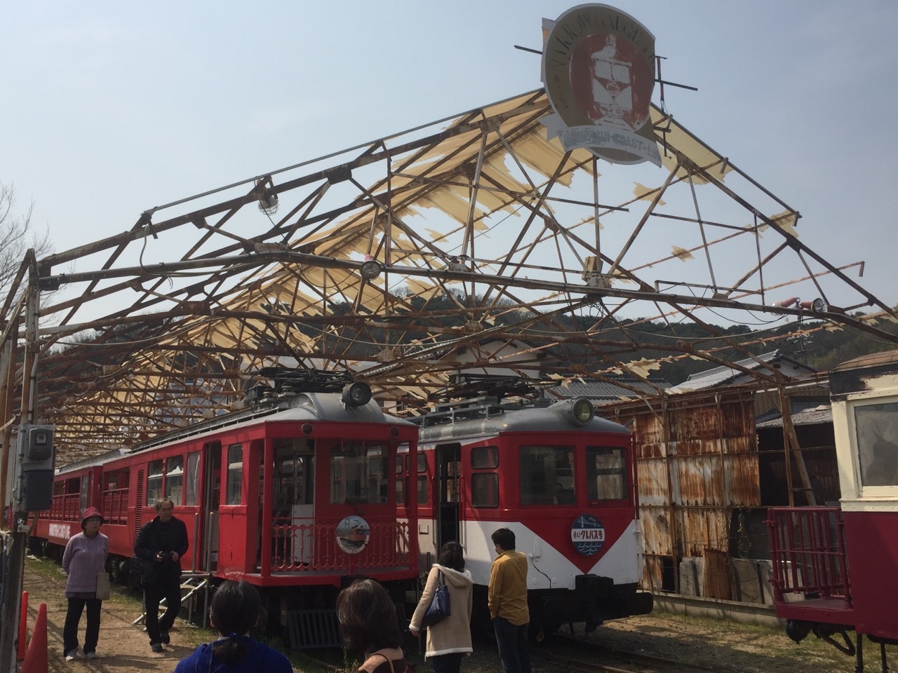 廃線跡の風の道の終点は、当時の下津井電鉄の終点でもある下津井駅跡。ここには下津井駅のホームや線路がそのまま残るだけではなく、下津井電鉄の電車が沢山残されています。