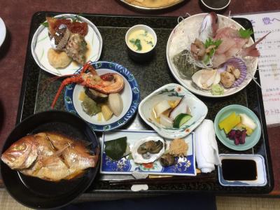 隣の部屋との壁が薄い古い民宿ですが、この民宿がズバ抜けて良いのは、海の幸をふんだんに使った豪勢な夕食。それも自分の部屋で食べられます。