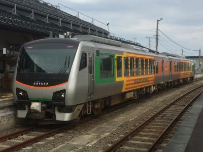 自動車もハイブリッドなら、この鉄道車両もハイブリッド車両。ただ観光列車ゆえに、展望がすこぶる素晴らしい上に、リクライニングシートの座席も足元が広い!まるでグリーン車のような快適さで、これだけ広ければ背もたれを倒しても前後の人に気を使う必要もありません。