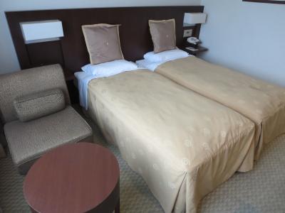 ツインの部屋を利用しました。広さも清潔さも良かったです。駅から徒歩で少しだけ距離があります。結婚式場もあるので、フロントは非常に奇麗で、接客も良いです。
