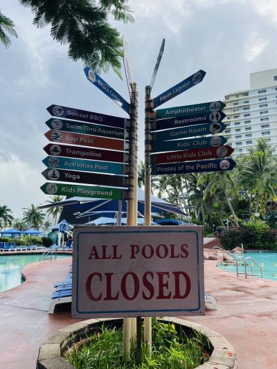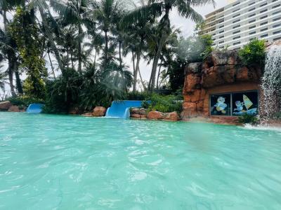 プールゾーンに移動。滝とスライダーの出口。ああもうすぐ終わりの時間かー...