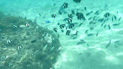 イパオビーチは歩いてすぐ。潜るならこっちがいいね。サンゴの近くには小魚...