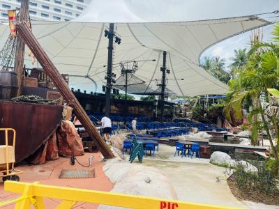 これから始まるパイレーツショーのセット。かなり大がかりで面白そう。「シ...