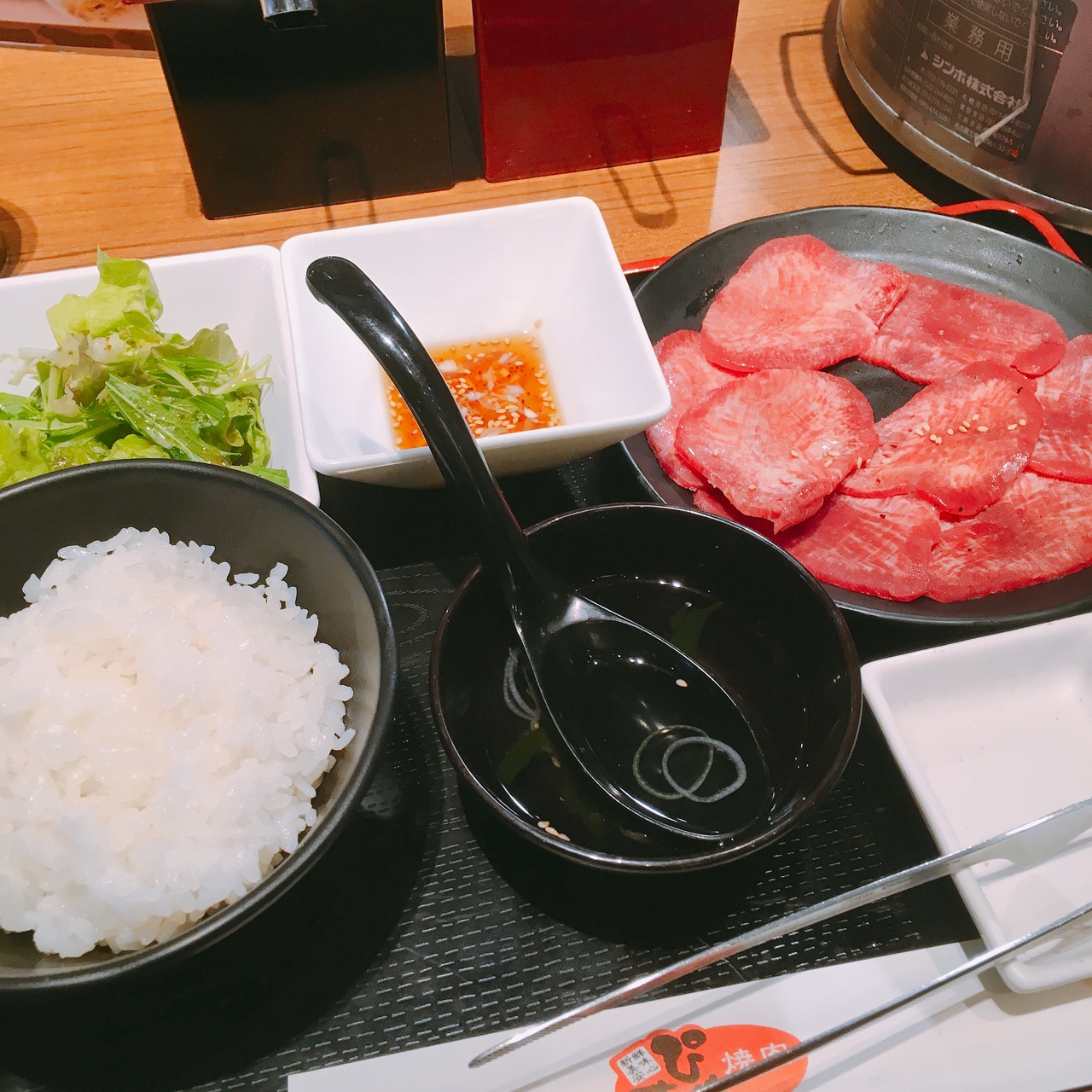 飯田橋のサクラテラスに入っている焼き肉店。サクラテラスができたころから存在は知っていましたが、特におしゃれなお店でもないので今まではいったことなかったのですが、そろそろ試してもいいかなとランチ時に訪問。入って後悔!もっと早くから利用してればよかった(笑)やっぱりさすがJAです。美味しい国産牛の焼肉ランチが1000円でした☆私は牛タン焼肉セット。だんな君は牛サガリ焼肉セット。どちらも1000円。シェアして食べました^^カウンター席もあるので、一人焼肉ランチの人も多数いました☆