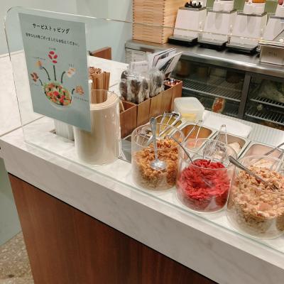 最近神楽坂にできたサラダ屋さん。2階席では食べることもできますが、この日はランチにテイクアウトしました。大体1000円くらいです。チキンとフルーツのサラダに、キャロットアップルのドレッシングを選んだら、美味しかったです。
