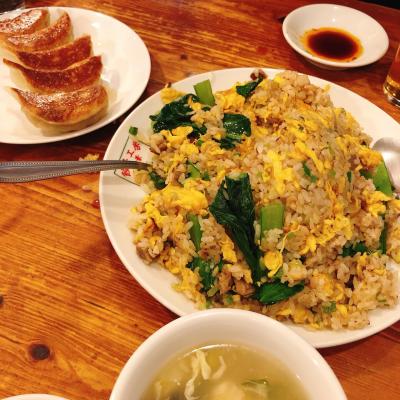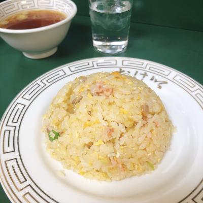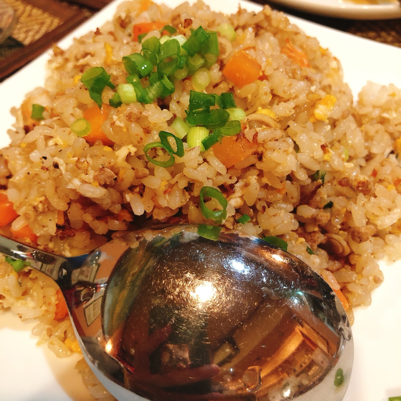 私は「オススメチャーハン」というものにしましたが、この日は鶏ひき肉ときんぴらごぼうのチャーハンでした。同行者は「月替わりチャーハン」を選びましたが、そちらは春野菜のチャーハンで、そら豆が入っていました。