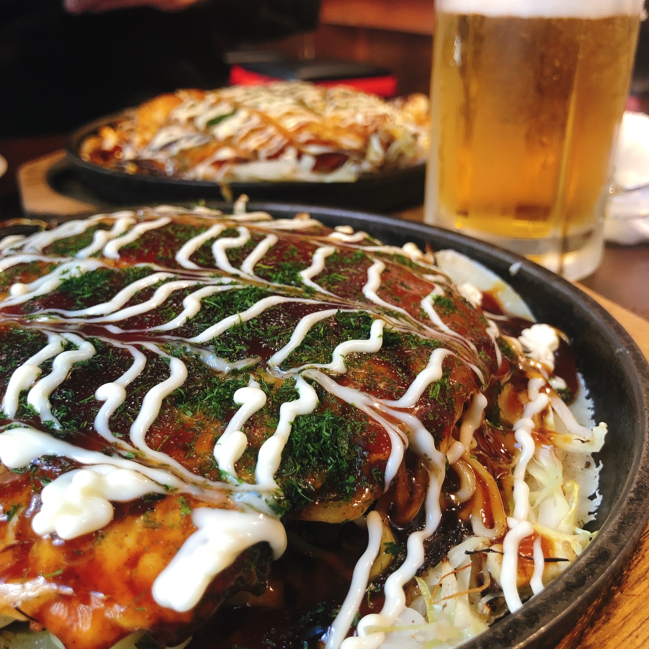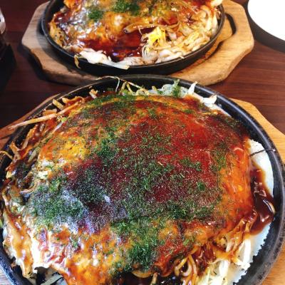 いつも行列ができているので、なかなか入店する機会がなかったのですが、そろそろ味わってみないととランチ利用。「広島風お好み焼き」。