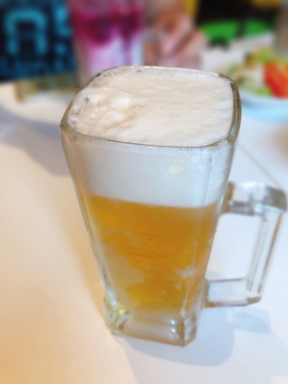 美味しいカレー。南インドカレーで、ドーサのセットもありました。ランチセットは950円~。ドリンクが選べますが、なんとビールも選べるんです。しかも差額なし。しかもジョッキ(笑)カレーと言えばラッシーなので、もちろんラッシーはあるんですが、ジョッキサイズのビールが飲めるとなれば、やっぱりビールを選んでしまうwwwお得です。