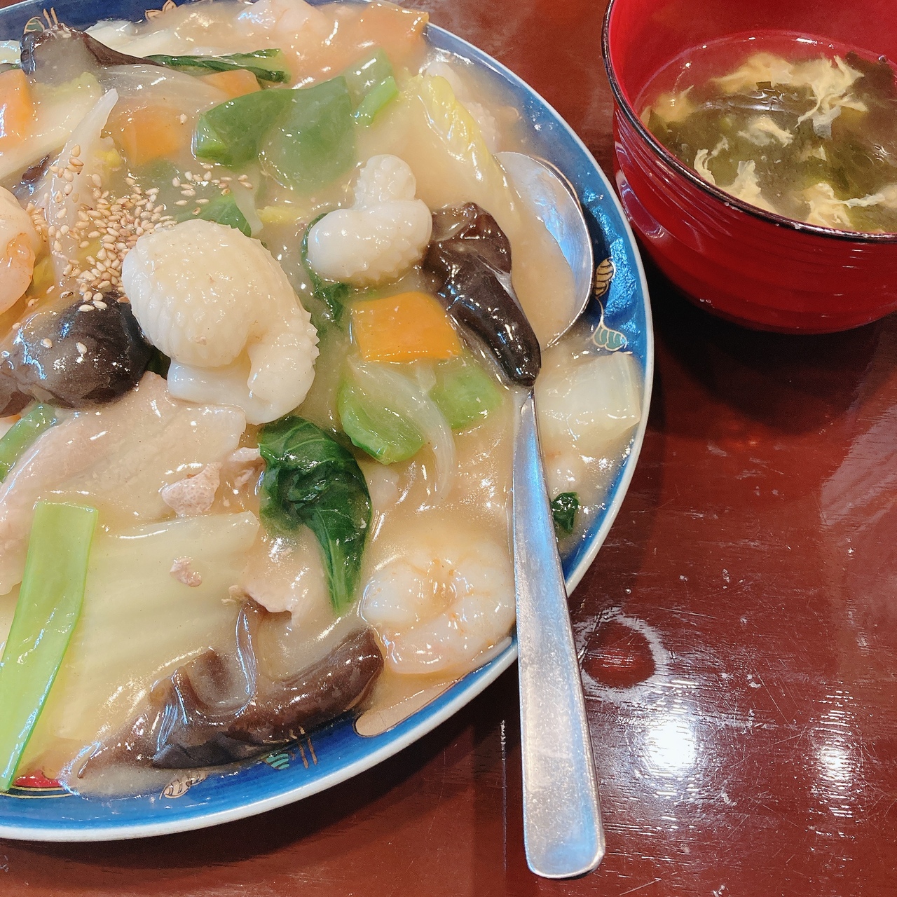 あんかけ飯、いわゆる中華丼を注文したら、店員のおばさんに、「女性だからごはん小でいいよね」と言われてしまい、お腹が減っていたので、別に普通盛りでもいいんだけどなぁと思っていたのですが、出てきてびっくり!