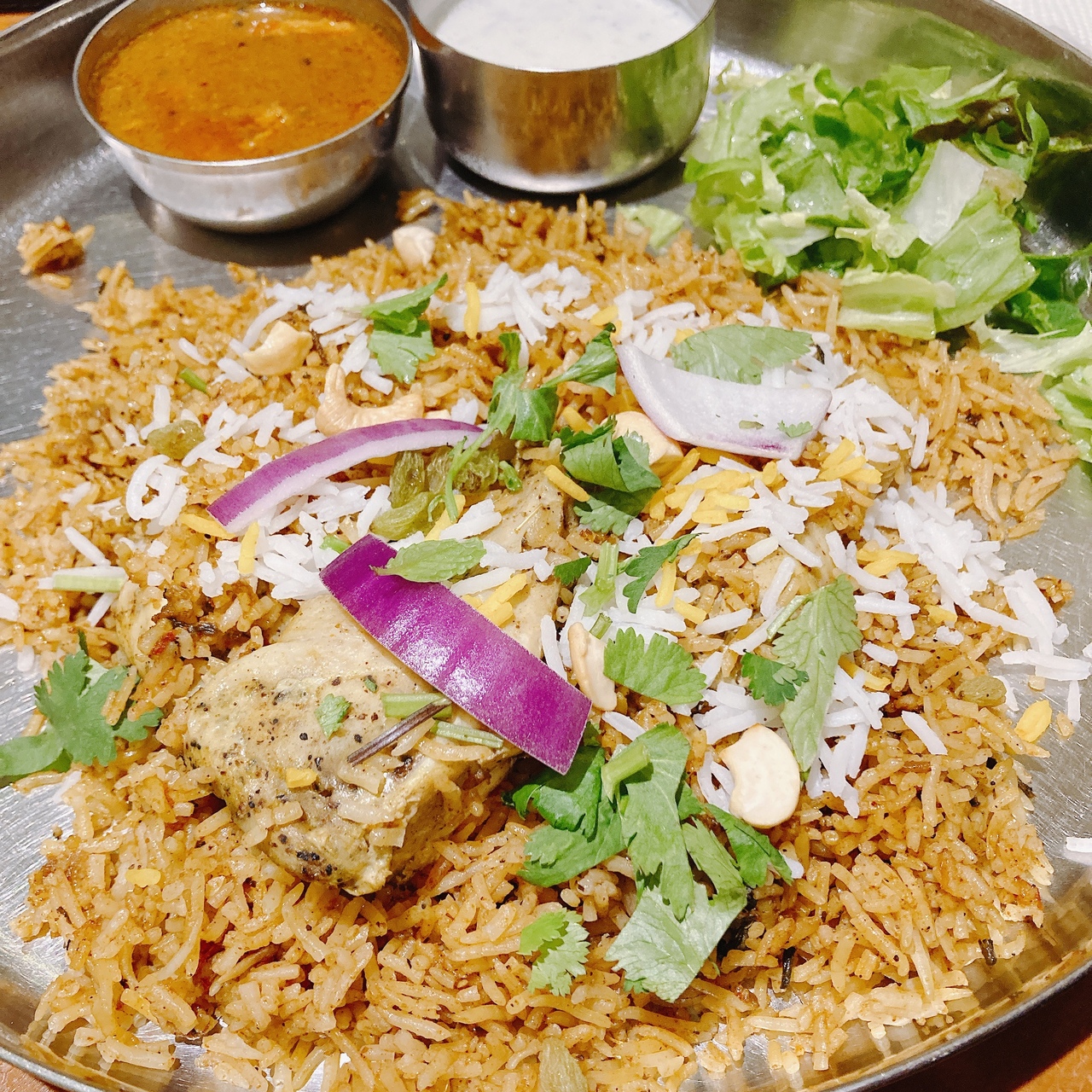 旦那がビリヤニ、私はチキンバターカレーにしましたが、どちらもとっても美味しかったです。- 旅行時期