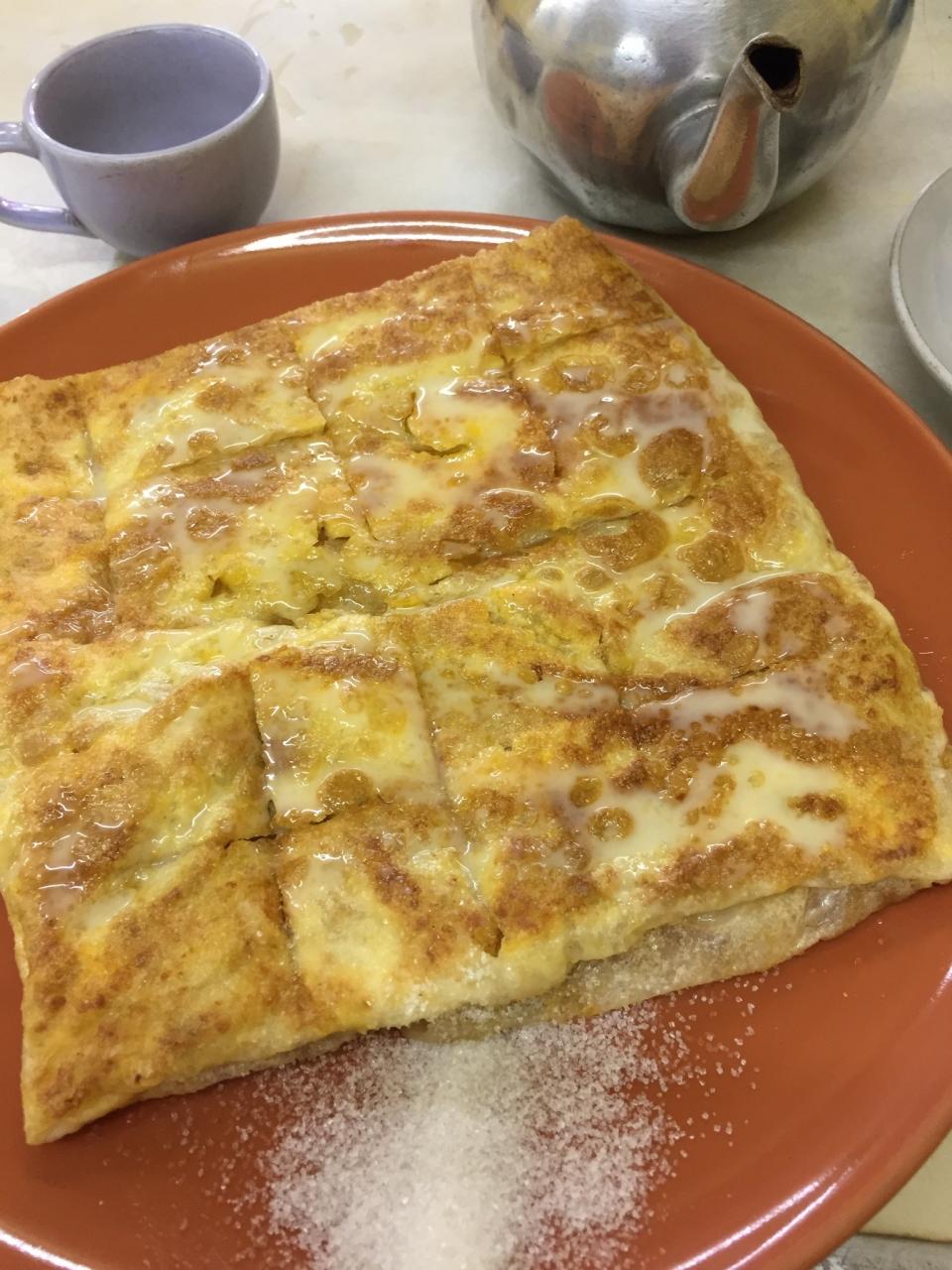 初めて食べるロティ。タイのパンケーキでバターを敷いた鉄板で焼いたクレープのようなもの。カロンビーチの屋台でも見かけましたが、こちらのお店は老舗です。