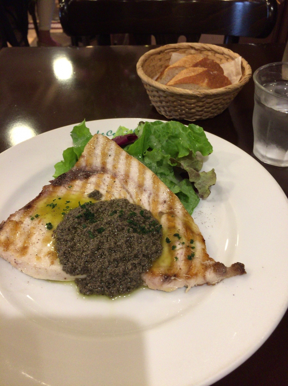 私が注文したのはメカジキのグリル・タプナードソース1000円。パンがついてます。