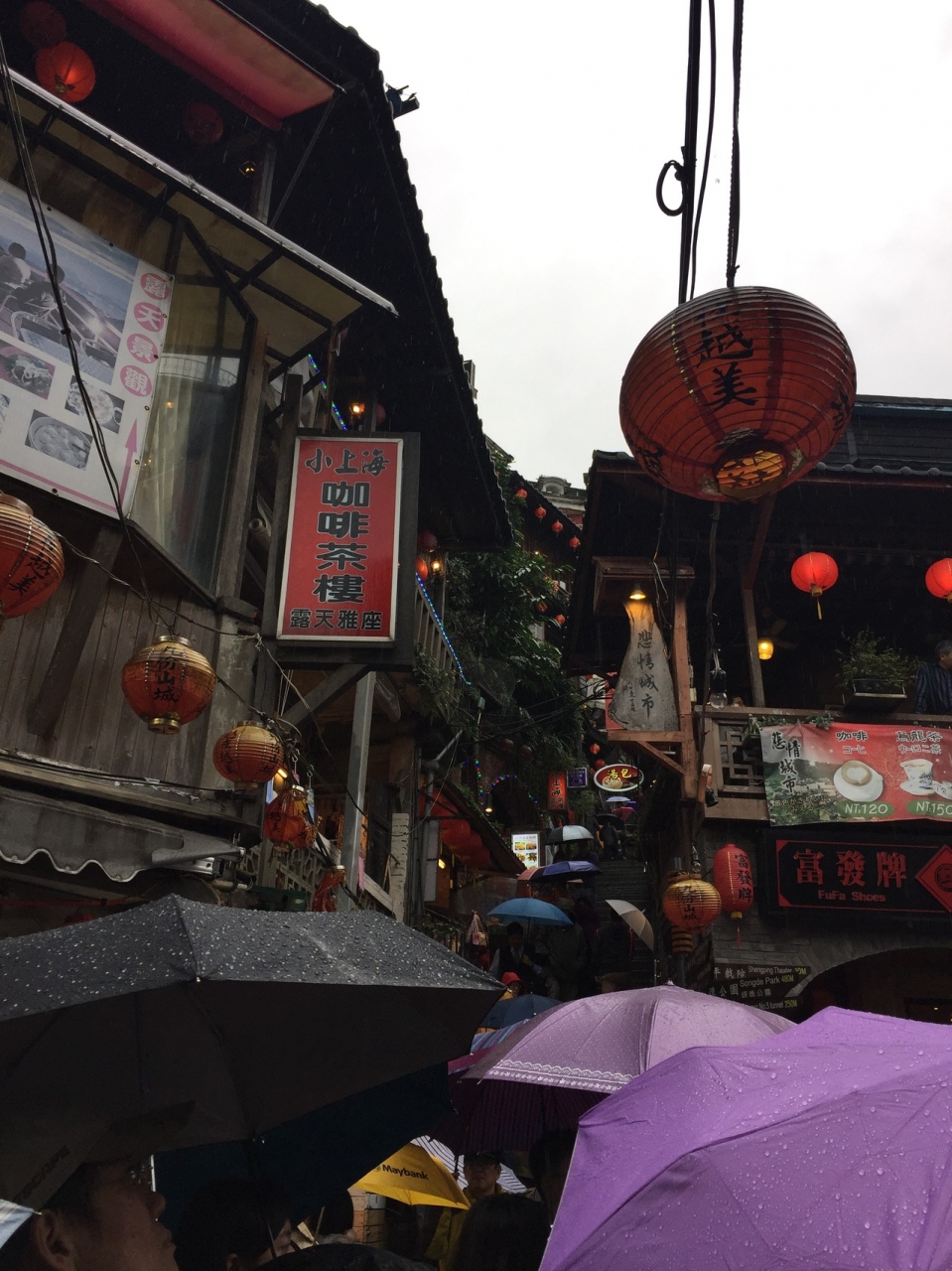 九分は雨がよく降るそうで、今回も雨でした。狭い路地をテクテク散策するので、傘はじゃあになるのでカッパが◎です。日本から持っていくのありですが、簡単ないかにも安物のカッパですが20元(80円)くらいでそこらじゅうで売ってるので現地調達するのがおススメです。- 旅行時期