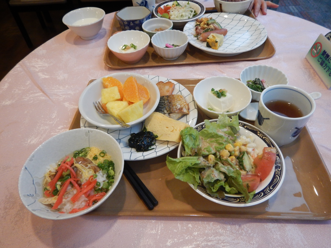 朝食のバイキングはパンの種類が少ないが、和食のおかずはかなりあるのでご飯党の人には嬉しいと思う。- 旅行時期