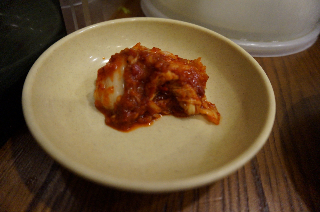 席につくと店員さんが白菜のキムチとカクテキを持ってきてくれました。