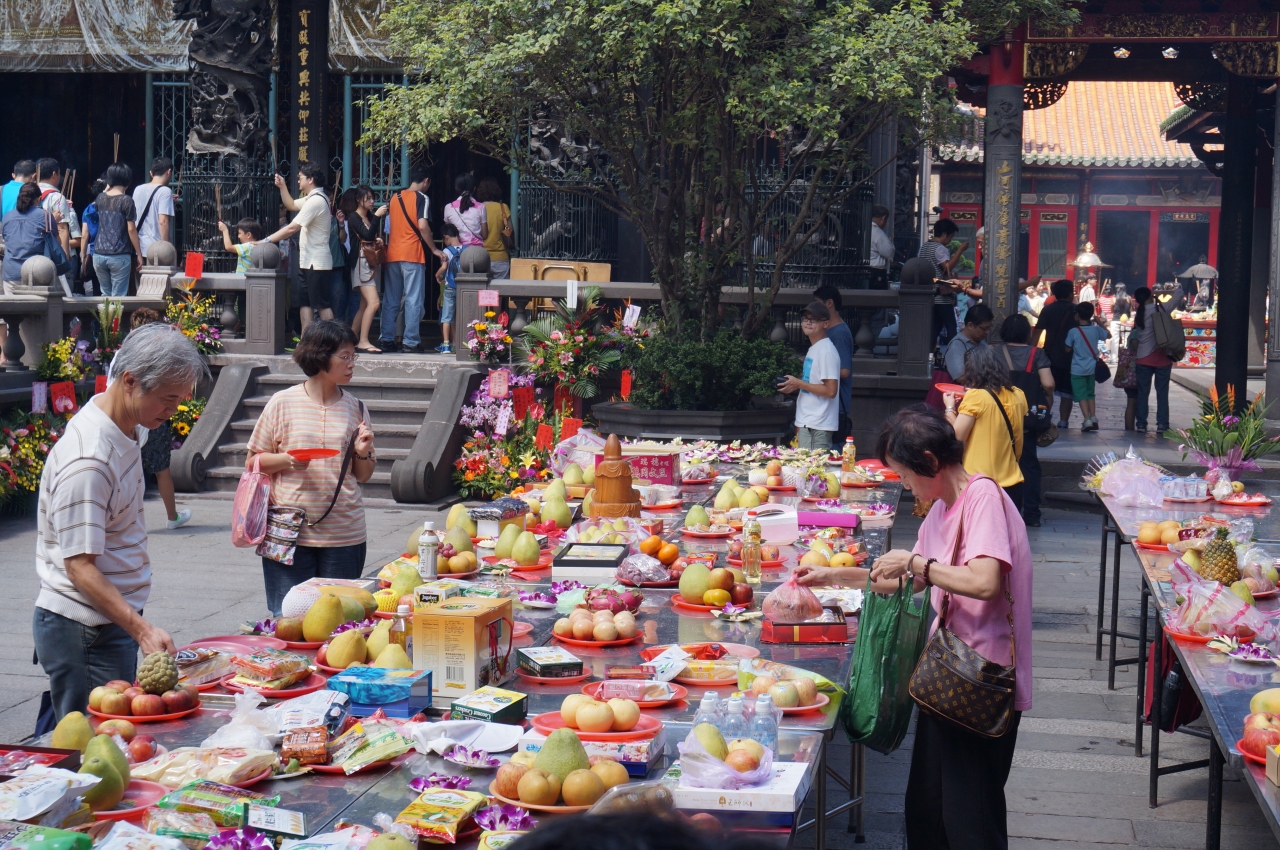 老若男女問わず多くの人がいて、また非常におおくのお供え物がそなえられていました。