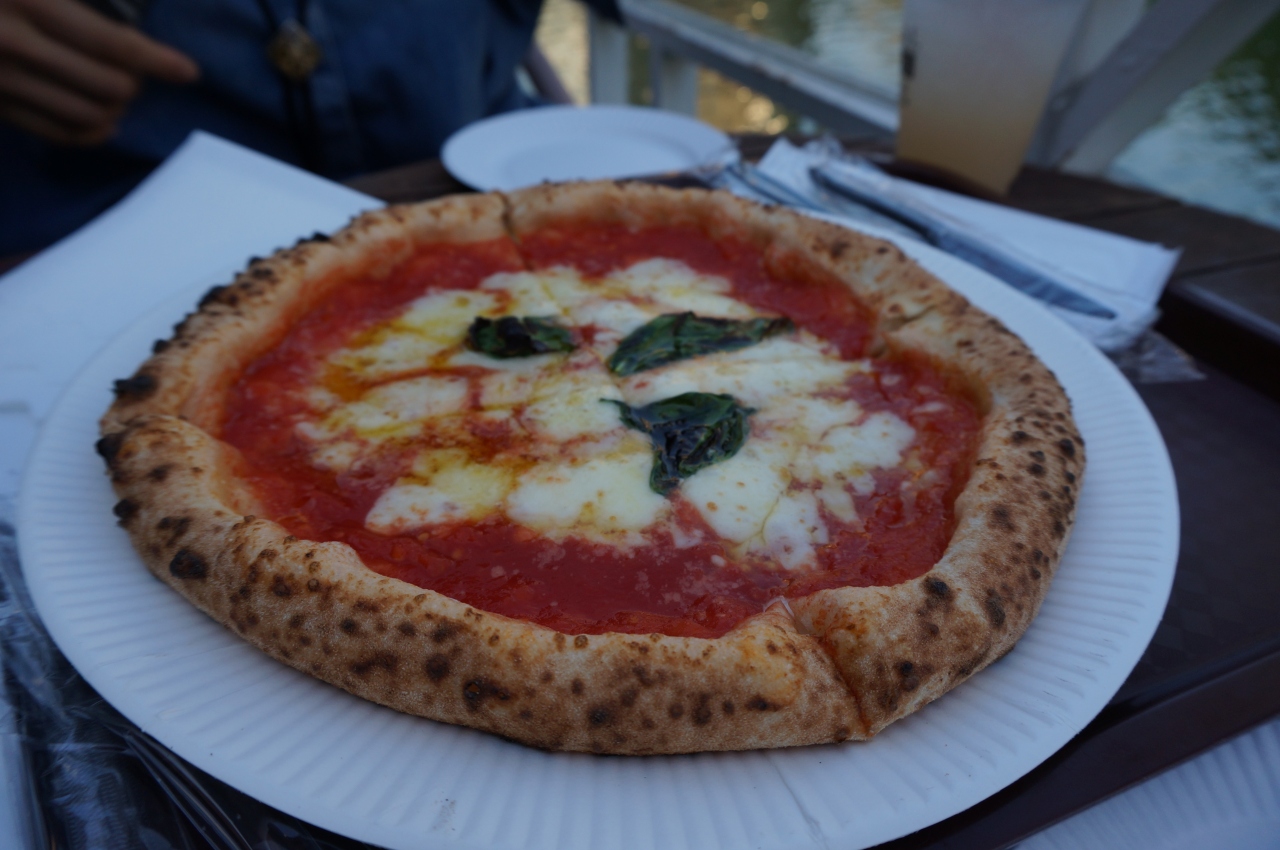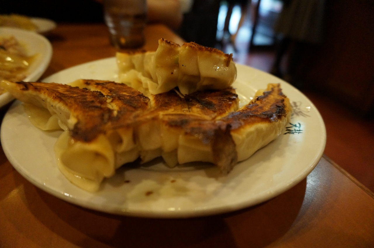 あまり期待はせずに名物の餃子を注文!まずは、大きさに驚かされました!しかし一口食べてみると…とってもおいしかったです。餃子と豆もやし、最高でした!すっかりファンになってしまいました。食券を先に購入するので注意です!