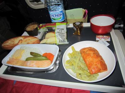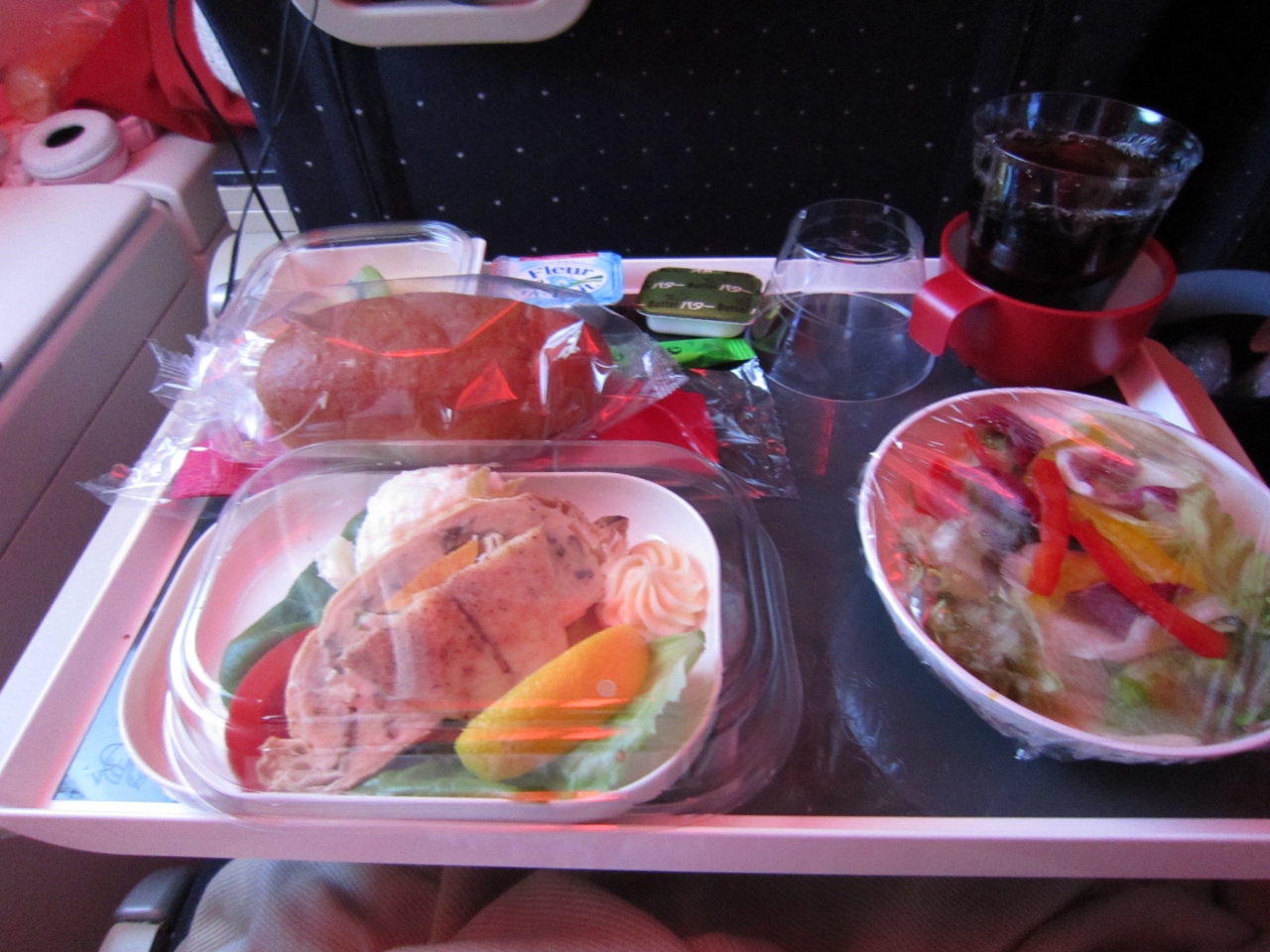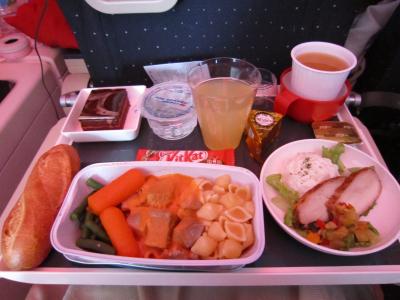 - 嬉しいシャンパンのサービスがありますが、機内食のお味は…