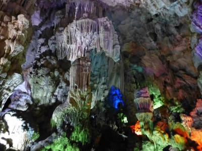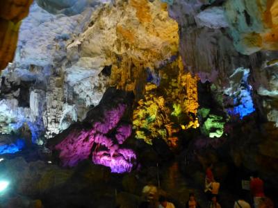 洞窟内は鍾乳石がライトアップされていてカラフルです。