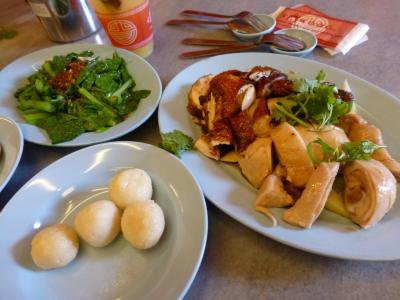 メニューはチキンが蒸し鶏、グリル鶏、アヒルなど5種類から選べます。