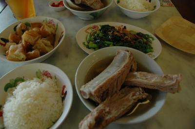 バクテー、カイラン菜の炒め物、揚げパン、ライスを注文しました。