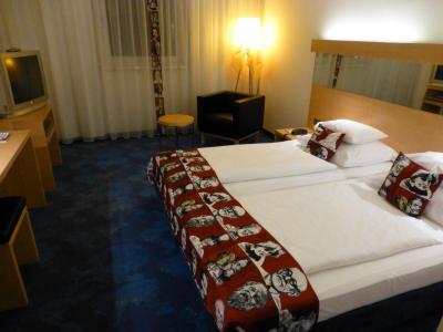 デザイナーズホテルのようで、ベッドカバーにはクロアチアの映画スターが描かれています。