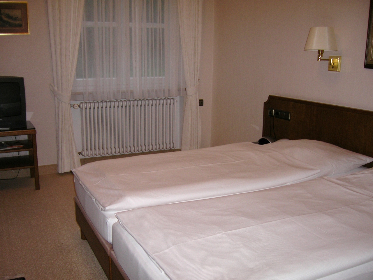 部屋はそんなに広くなく、冷蔵庫・エアコン等なし、テッシュなし、バスルームにドライヤーなし、バスタブなし・シャワーブースのみと、ないない尽くしだったが、リーズナブルな値段で部屋からどーんとホーエンシュヴァンガウ城が目の前に見える部屋なら、超大満足!!