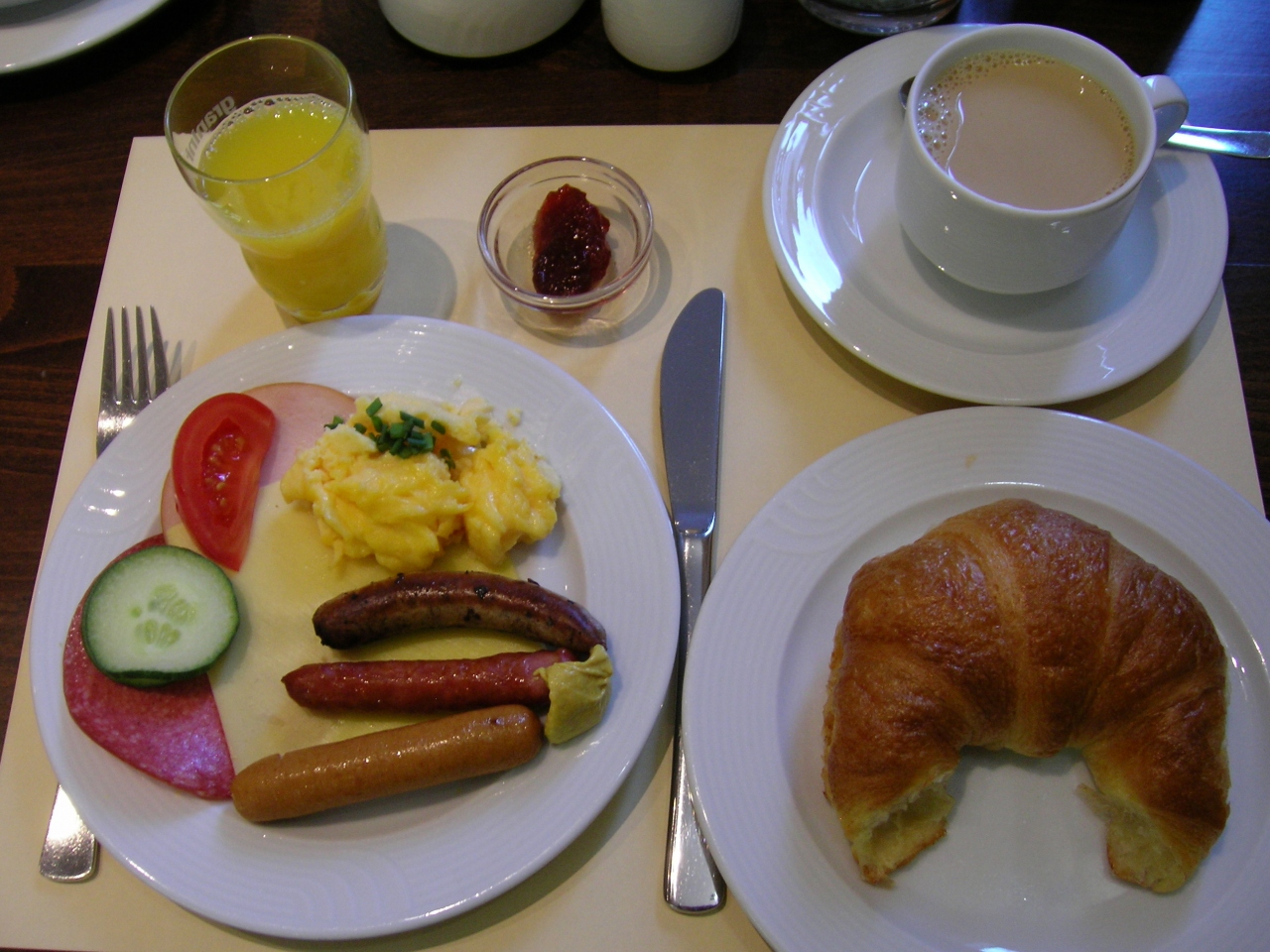 朝食も一般的なドイツのホテルの朝食です(朝食時間は6:30~10:00)。私の好きなクロワッサンがなかったのが残念でした。