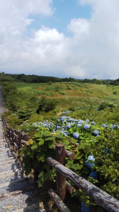 球島山もお店の方に勧められて登ってみたところ、山頂は霧で視界が悪かったので、翌日の朝もう一度トライすると、すっきりと晴れて素晴らしい景色が見れました。8月でまだアジサイが盛りなのはさすが北海道と思います。