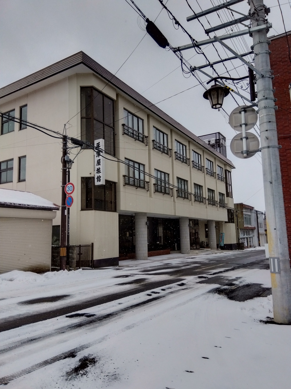 バス停から徒歩10分、メインの国道から雪道をキャリーバッグを引いて行くのは少し骨折りでしたが、着いてみると巨大な温泉旅館でした。