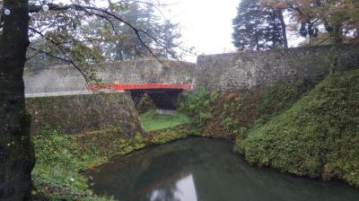 石垣で整備されていないお濠は昔のままなのでしょうか。冷たい雨の中、背に顔を隠して浮いている鴨を見ながらお城を後にしました。- 旅行時期