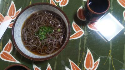 運ばれて来た蕎麦は真っ黒でつやつや、冷たい方はなかなか歯ごたえあり、温かい方は出汁の色は関西にしては濃いですが、味はなかなかのもの。冷たい方は後で蕎麦湯も出てきました。