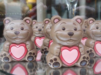 「小便小僧」の近くのチョコレート屋さんのショーウインドウ