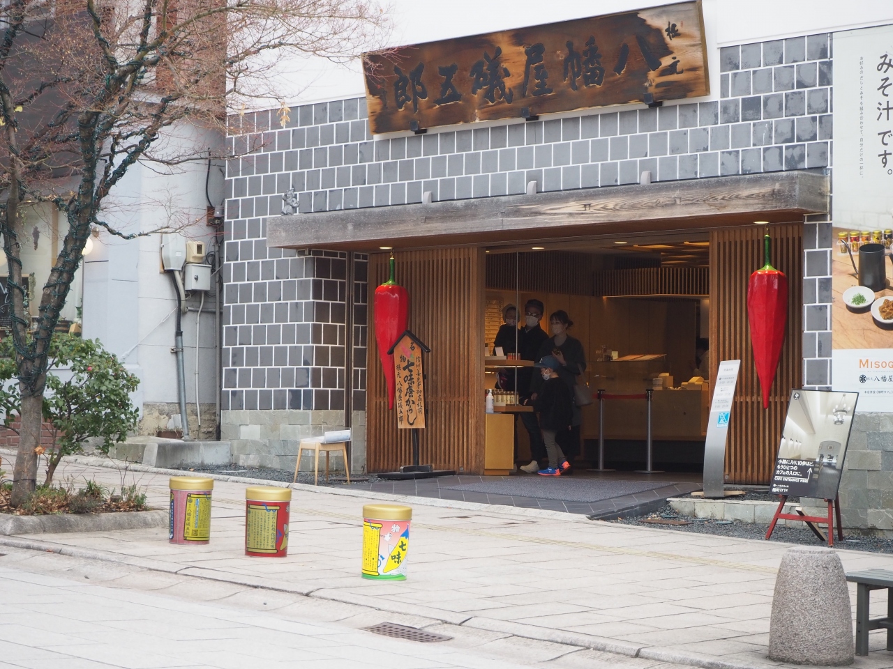 店の前には、七味缶のベンチがあったり、横には七味のトラックがあり見てるだけでも楽しいです。