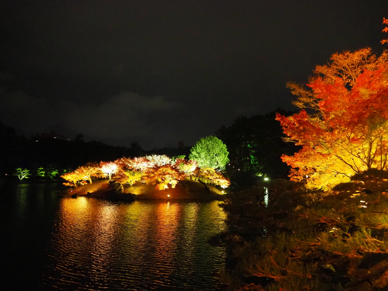 園内はいろんなライトアップがされていて紅葉のかさなりとても綺麗でした。