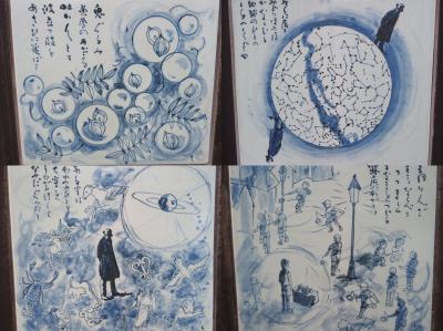 宮沢賢治にちなんだモニュメントが道路の脇にあります。看板があるのでそれを写メしてから歩くとわかりやすいと思います。絹座という石のモニュメントがあり、絹??石??と思ったらシルクロードの事だったみたいです。他にもタイルに詩が書かれていたり好きな方は楽しめると思います。