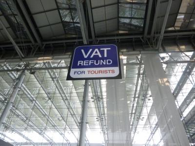 広い空港ですが免税手続きは混んでませんでした。ただ、現金の還付です。スタンプの時にバッグなどを提示することはないみたいで、あっても時計くらいだそうです。私の行った朝は空いていて空港内もゆっくり見学できました。空港の両替レートはどれも同じだったと思います。