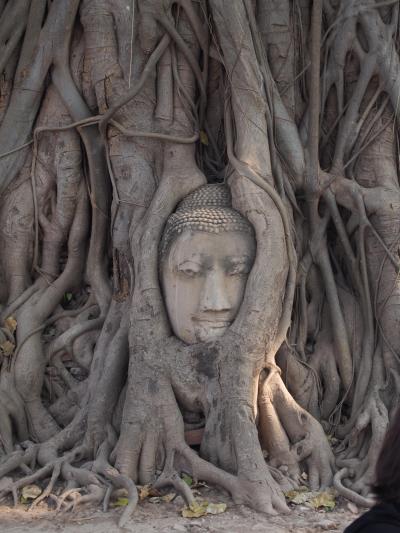 アユタヤといえばこちらの仏頭が有名です。写真を撮るときは仏さまより低くないのでしゃがんで撮影します。多くの人がいますが、何となく波があるので少し待てば写真が取れます。また、入口には禁止の看板があり、「イチャイチャだめ」の文句も面白かったです。