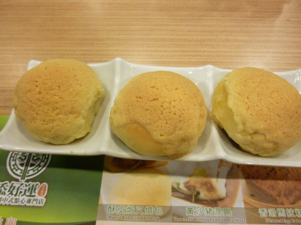 チャーシューメロンパンの有名なお店です。駅の地下街にある雰囲気です。どちらかというとフードコートのようで外から丸見えの店構えです。皆さんメロンパン、チマキがスタンダードに注文されてました。英語メニューもありますがそこから想像力を働かせるのも大変でした。一度話のタネに行かれてもいいと思います。