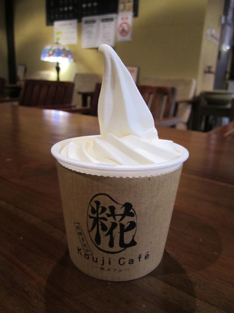 こうじのソフトクリームを食べました。味は至って普通のソフトクリームなのでややガッカリ感はありましたが店内のくつろげるスペースを利用できるので値段もさほど高いとは感じませんでした。ドリンクも気になりましたので次回はそちらにトライしようと思います。
